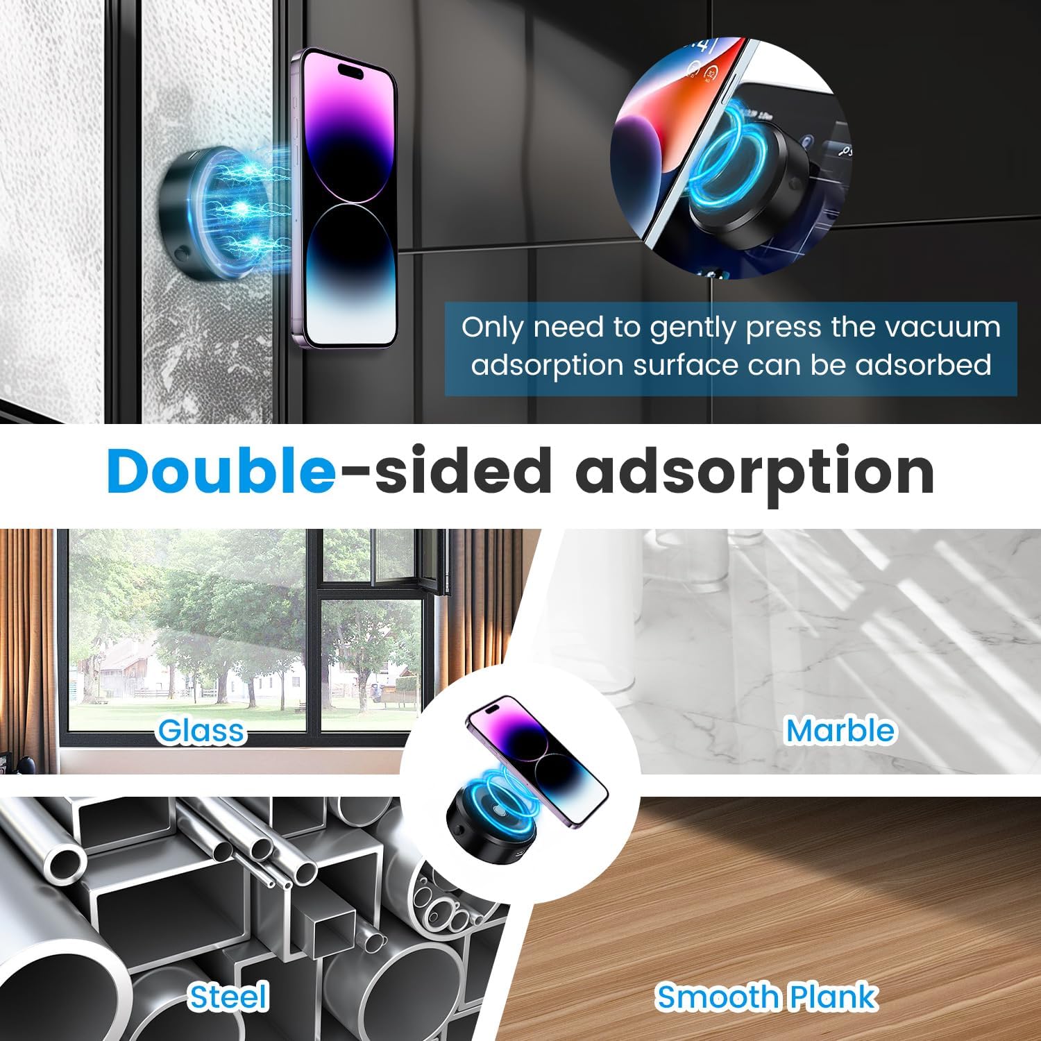 Electric Vacuum Magnetic Suction Phone Mount, HandsFree Magnetic Car Phone Holder, Double-Sided Phone Holder Compatible with Car Dashboard Installation, Smooth Surface, Phone, Phone Tablet